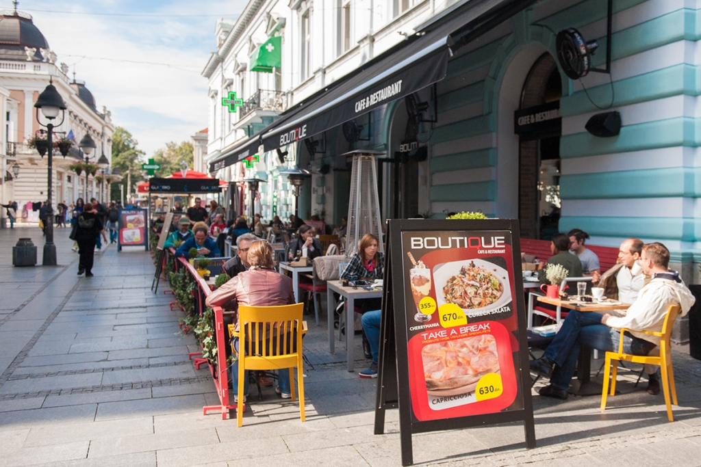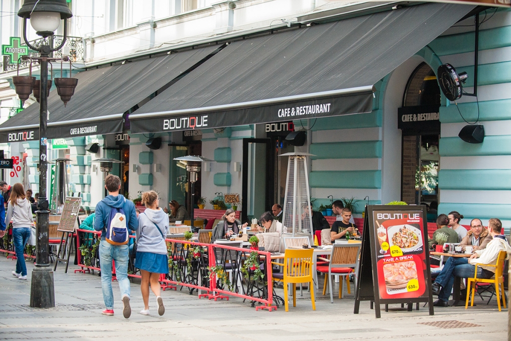 Restoran Boutique 2 se nalazi u Knez Mihailovoj ulici. S obzirom da se nalazi u ulici koja je zaštićena zakonom i predstavlja lokalitet od izrazitog kulturnog značaja, ceo restoran je koncipiran u cilju spajanja modernog i tradicionalnog. Rekonstruisana je stara fasada kako front ne bi odstupao od okruženja u kome se nalazi. Enterijer restorana je osmišljen tako da na dinamičan i vedar način uklopi nove elemente sa onim što je dugogodišnje nasleđe ovog prostora.