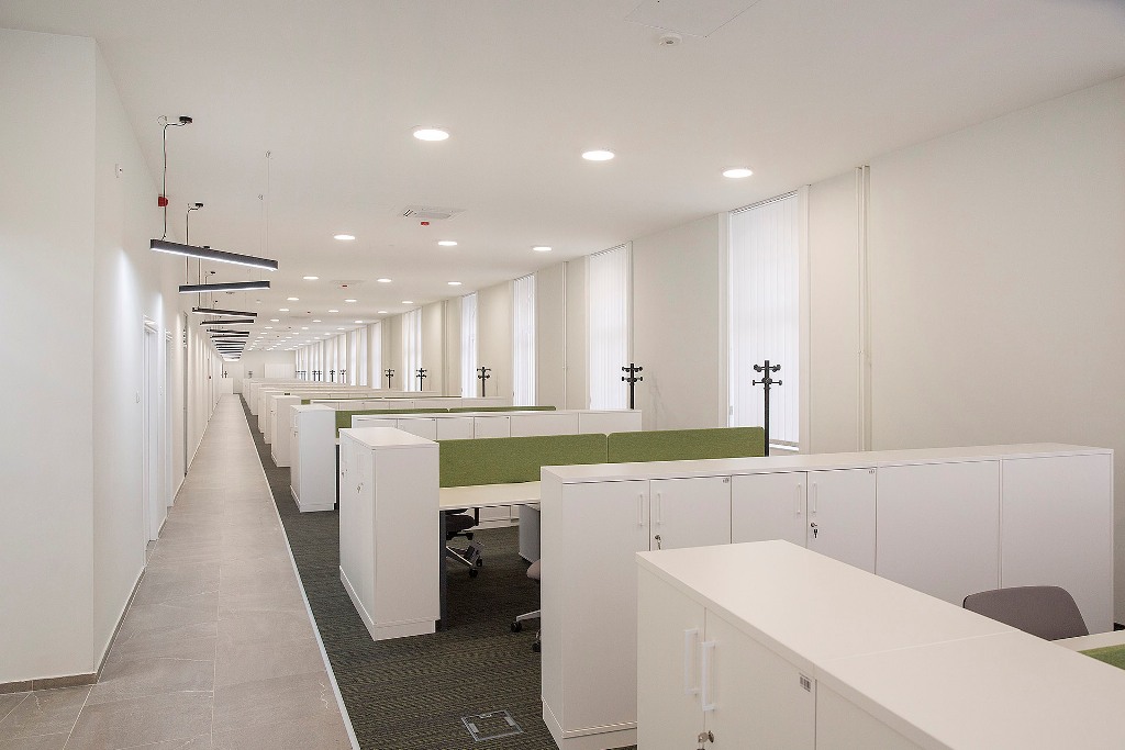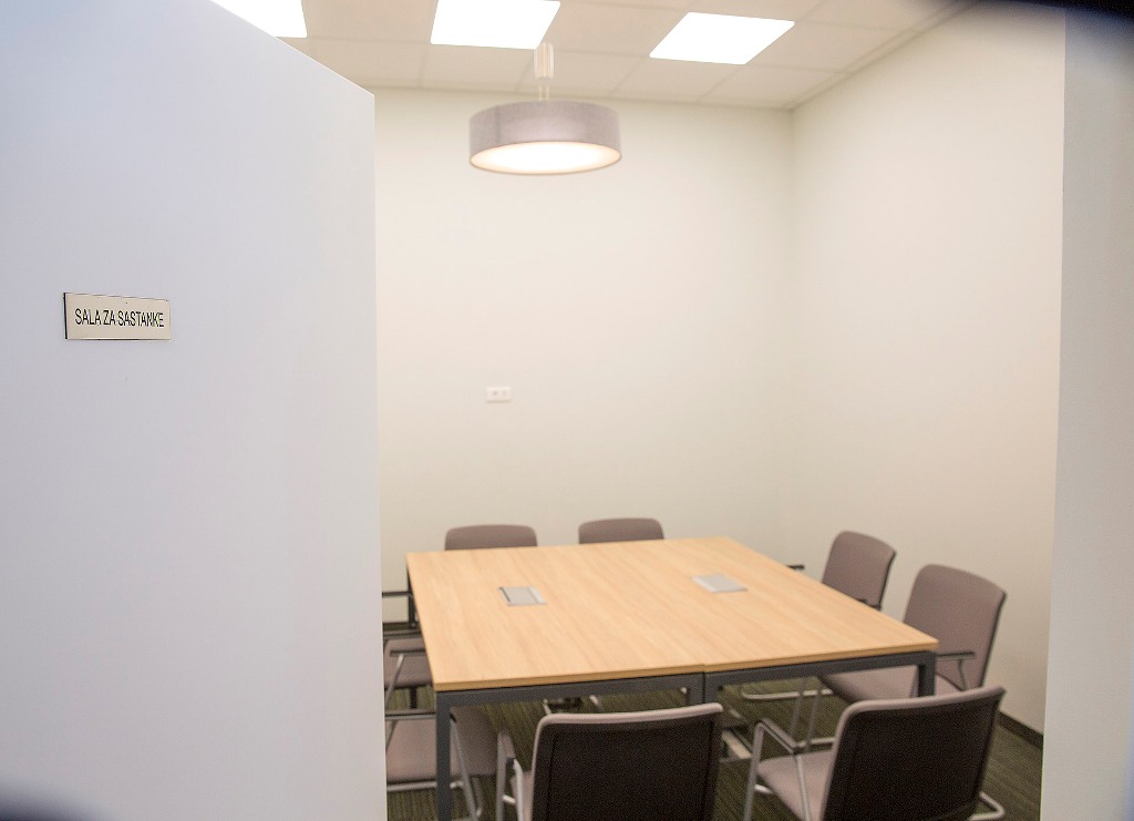 Deo prostora sastoji se od sala za sastanke sa klijentima sa vrhunskim video konferencijama, zajedno sa otvorenim prostorima za administraciju. Cilj je bio da formiramo veći prostor za sastanke zahvaljujući novim preklopnim zidovima.